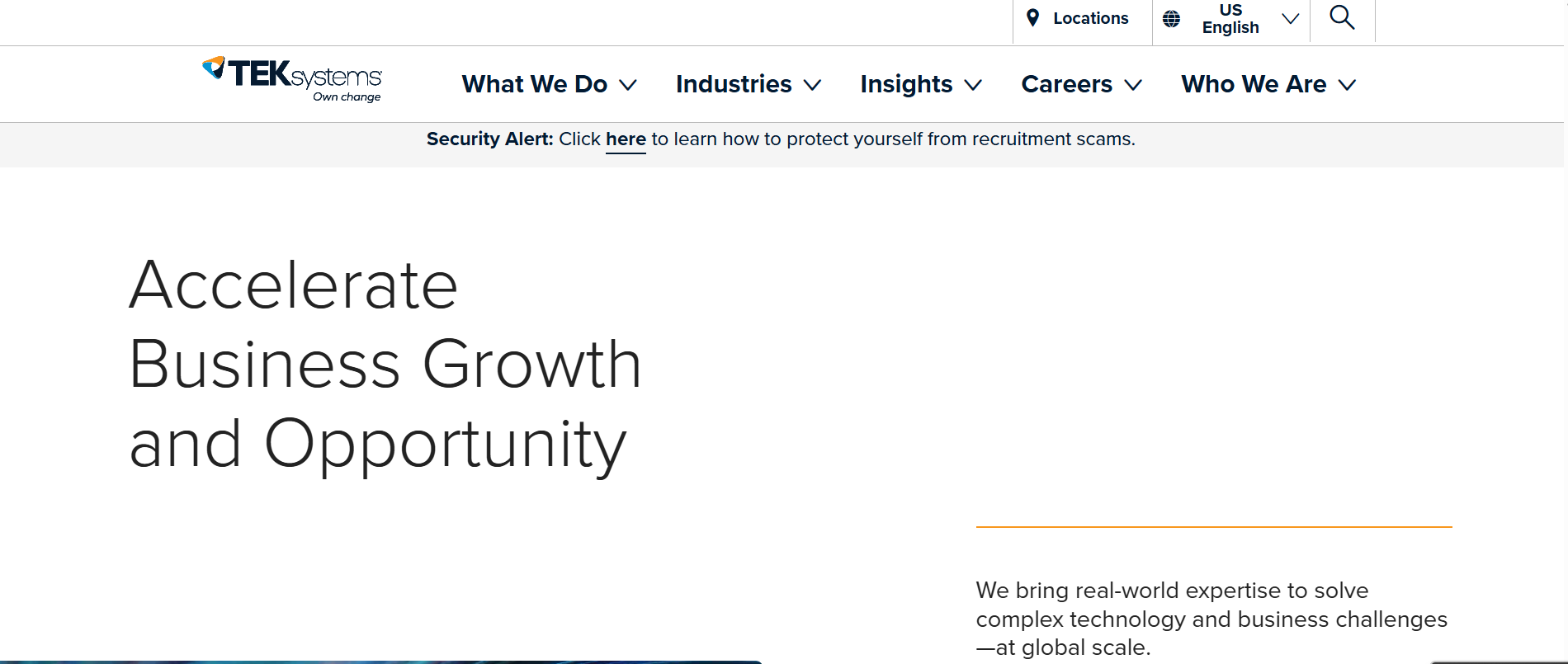 As one of the largest technology staffing and services companies, TEKsystems connects highly skilled professionals with leading enterprises worldwide. The company’s workforce solutions empower organizations to fill critical skill gaps through on-demand teams and managed services.