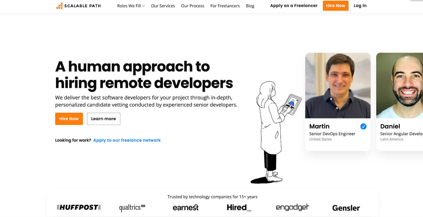 Scalable Path provides pre-vetted developers. They can easily join or extend your team with little onboarding effort. Their screening is more thorough than standard platform checks. Senior engineers perform live technical interviews and role-specific tests. The network’s global reach allows you to access a variety of talent while keeping engagement flexible and affordable.