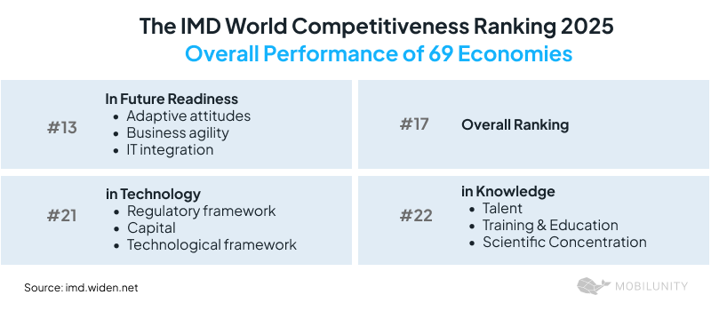 Lithuania is a Moderate Innovator according to the European Innovation Scoreboard 2025 (#33 globally) and has EUR 724M allocated in the Recovery and Resilience Plan to advance the country’s digital transformation.