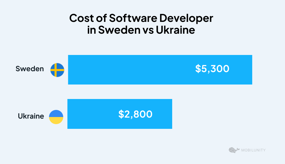 The above data prove that hiring Swedish coders is more cost-effective than getting on board a programmer from the USA for around $106,183 a year. Whether you hire a frontend developer Stockholm, a Java engineer in Gothenburg, or a web developer Sweden, you’ll save. However, let’also compare the salaries of Swedish and Ukrainian engineers.