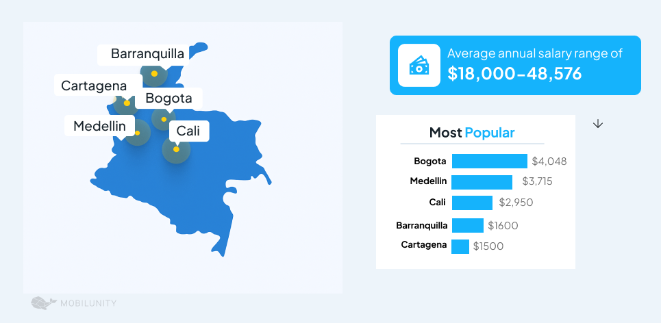 The Colombian capital city of Bogota is a leader in the country’s thriving tech scene. There are over 6,500 Latin American devs in the city, making it a hub for technological advancement. The competitive nature of the profession in Bogota allows for these bright individuals to fetch an average monthly pay of $4,048.