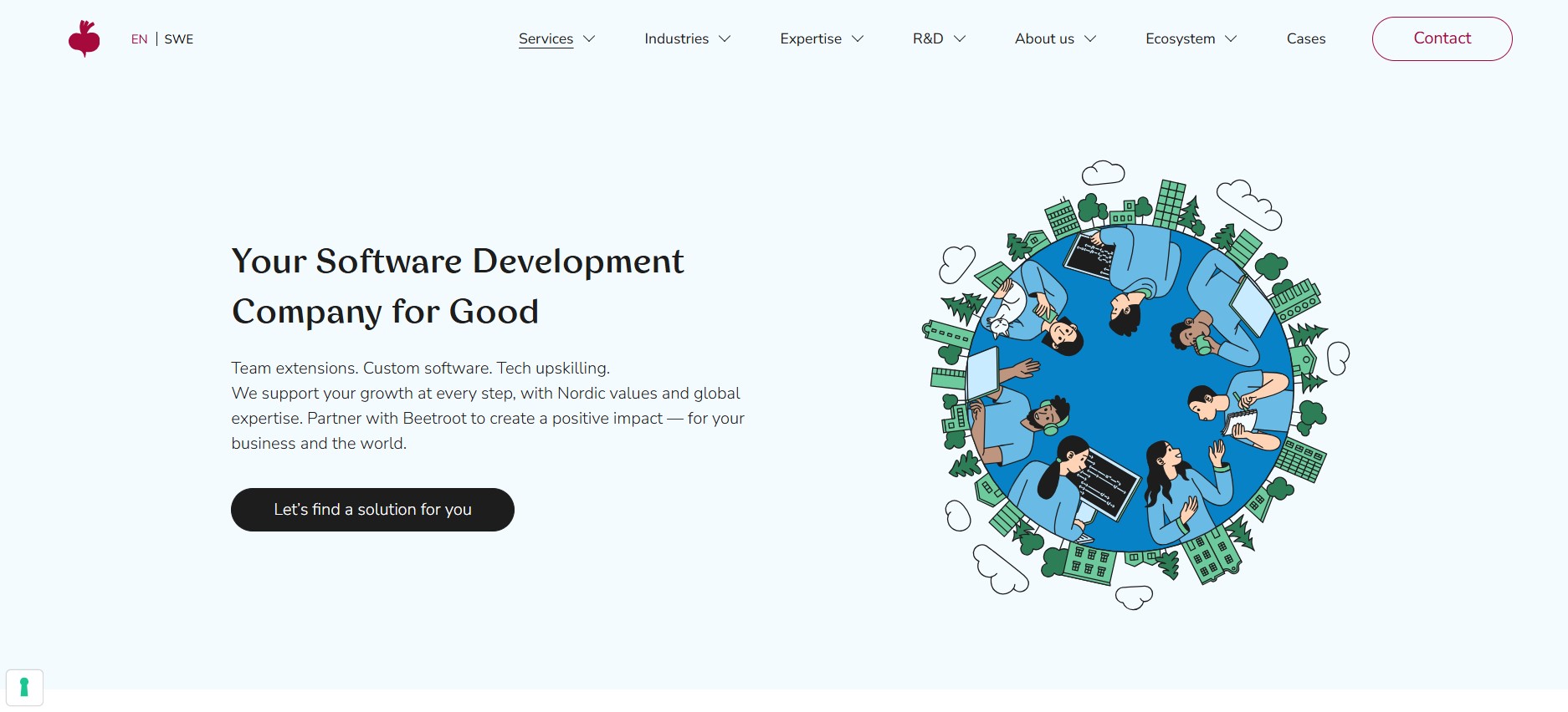 Founded in Sweden with development hubs across Ukraine and Bulgaria, Beetroot AB combines social impact with technology delivery. The company builds sustainable tech teams for clients in education, green tech, and health industries.
